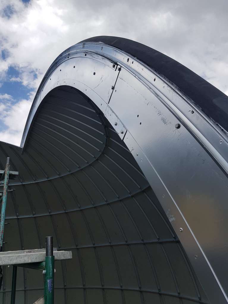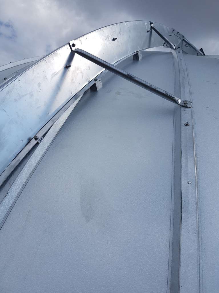 We spent today installing all the braces inside the dome. We finished the pipe brackets and installed a bunch of supports for the shutter track. Tomorrow we will seal the shutter track with putty, install the top shutter, and get the control electronics working to test the system. The replacement bottom shutter is still scheduled to arrive tomorrow afternoon, and we will install it Tuesday morning.