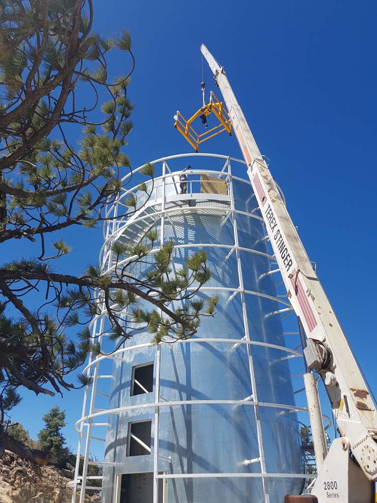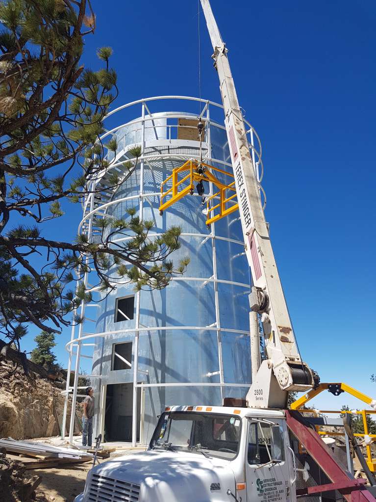 Gantry crane being lifted to top of enclosure #1.