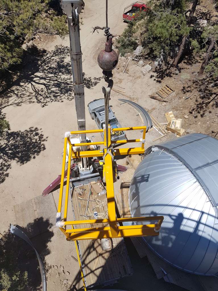 Gantry crane being lifted to top of enclosure #2.
