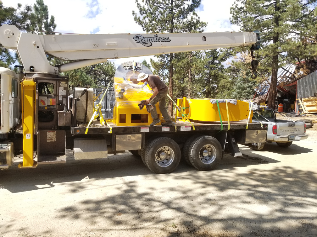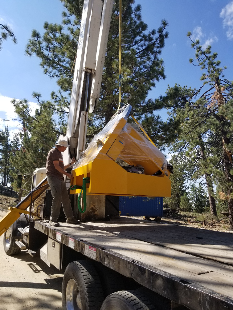 Setting pedestal down on flatbed.