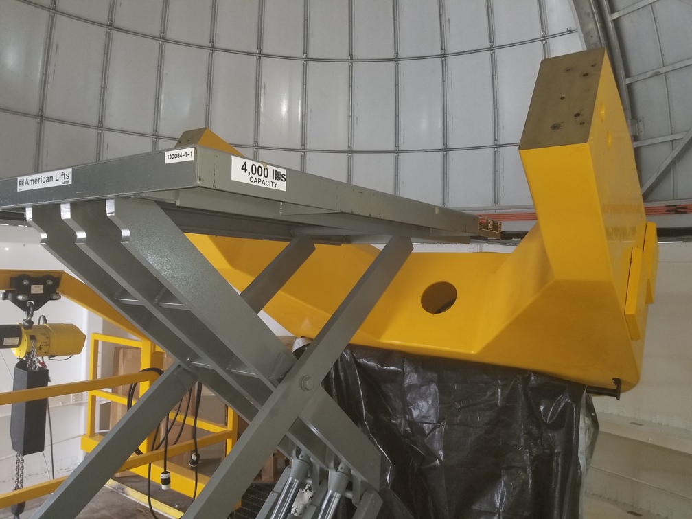 Lidia has arrived at SPM. Winds were too high this morning for any crane work, so we went ahead and fixed a problem we noticed yesterday with the lift table at Site #2, namely that the table wouldn't clear the fork when raised high enough to get the primary mirror cell onto the center section. So we cut off the two corners of the table nearest the telescope, and the problem is now solved.