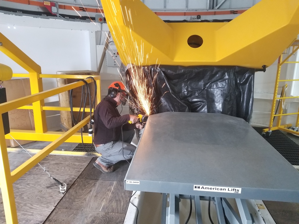Ian cutting off one of the corners of the lift table.