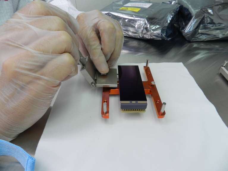 In order to handle the device safely, we made a special tool that can be attached to the side of CIS 113 sensor. With this tool, the sensor can be removed from the e2v package and be installed on the cold plate. Also, a special handling box is made to transport the cold plate assembly in and out of the clean room where the sensor installation is made. The installation was done from Aug 30 to Sep 1.