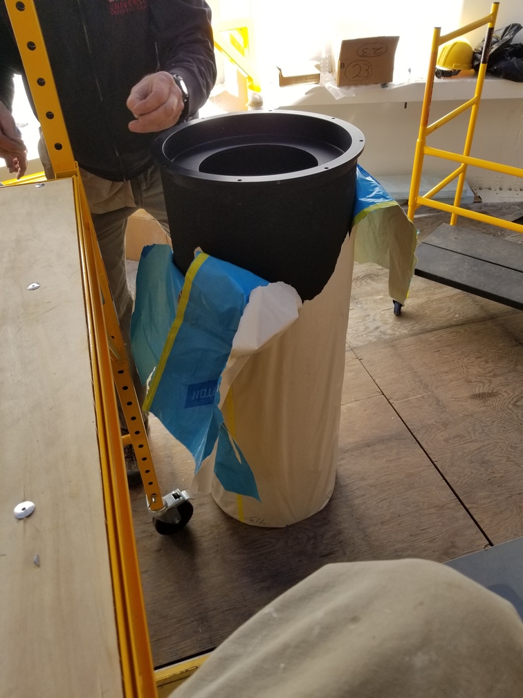 Today we installed the primary mirror on the first telescope, at Site #1. The operation went very well, with no problems to report. We worked on the installation of the secondary mirror this afternoon as well, but we found a couple holes in the truss ring that needed to be countersunk, so we will do that tomorrow morning and finish the installation then.