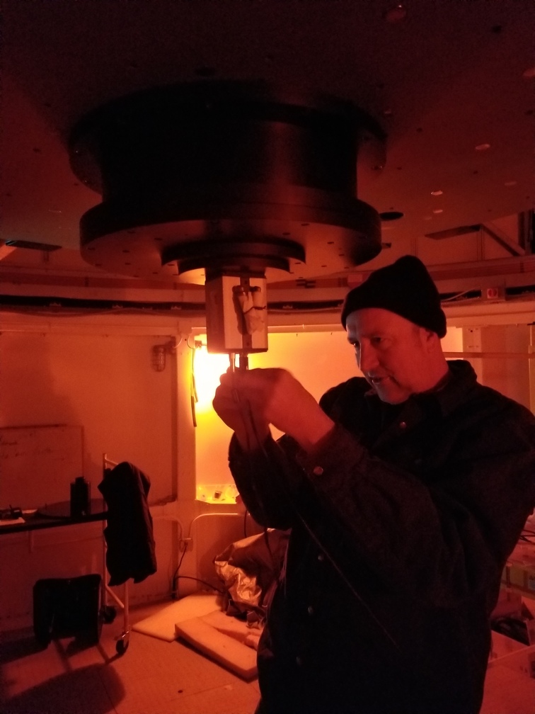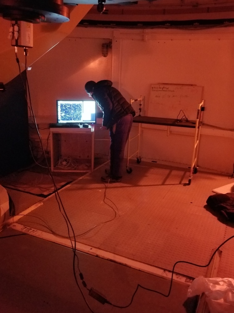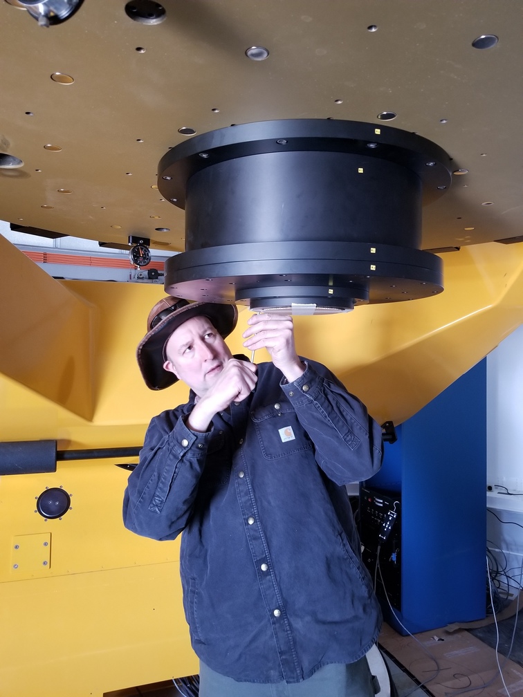 Mark pointing the telescope to a bright star for focusing.