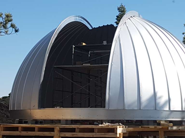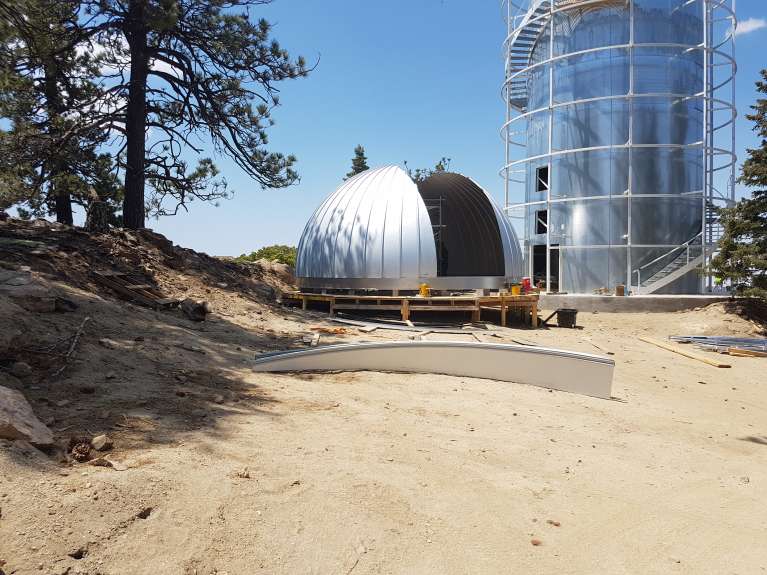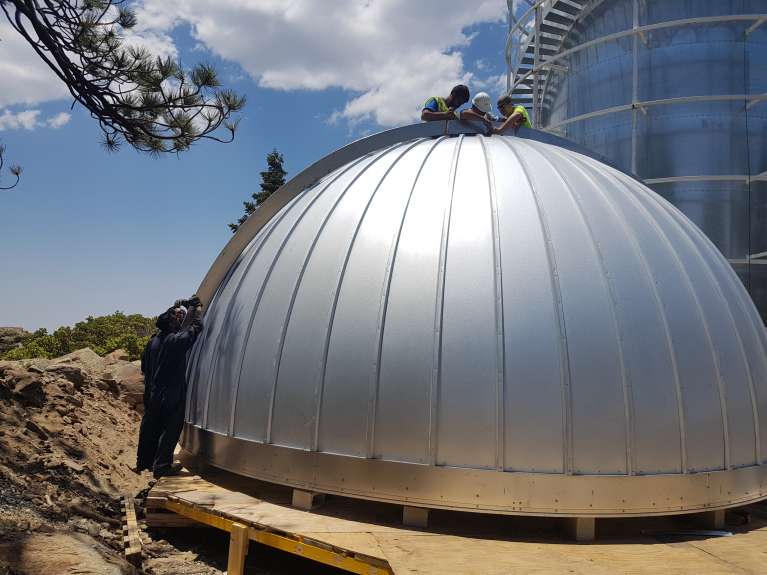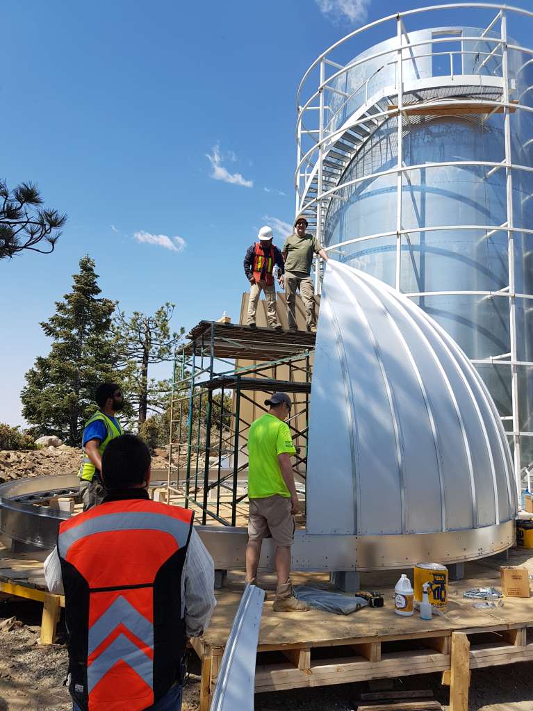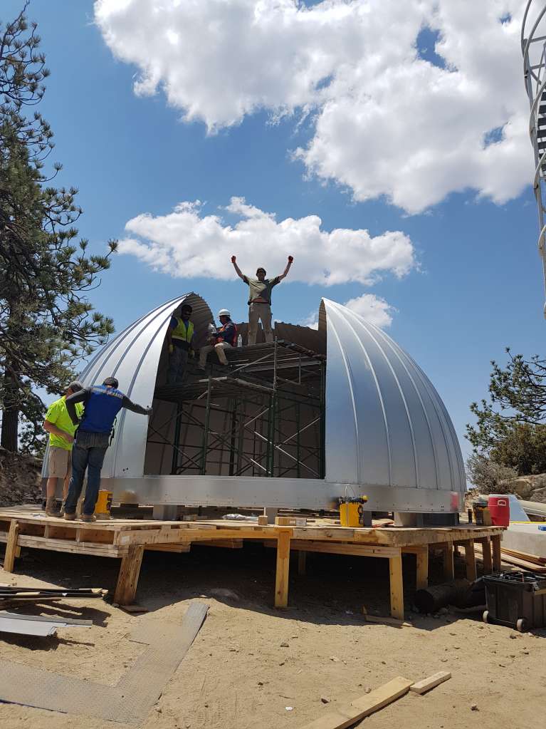 Today we assembled the main structural components of the dome at Site #2. First we installed the dome leaves, which are the curved metal sheets that give the dome it's shape. We then installed the upper shutter tracks, which provide significant strength to the structure. We finished up by installing the pieces that hold the top shutter drive, as well as provide additional structural support.