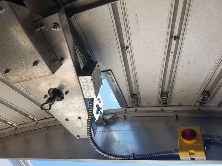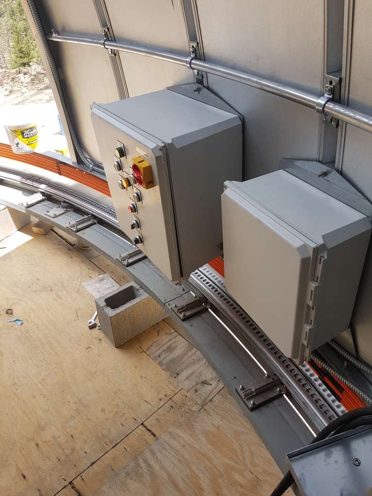 Control electronics installed above dome skirt. Box on the right has a radio receiver for operation by remote handheld control.