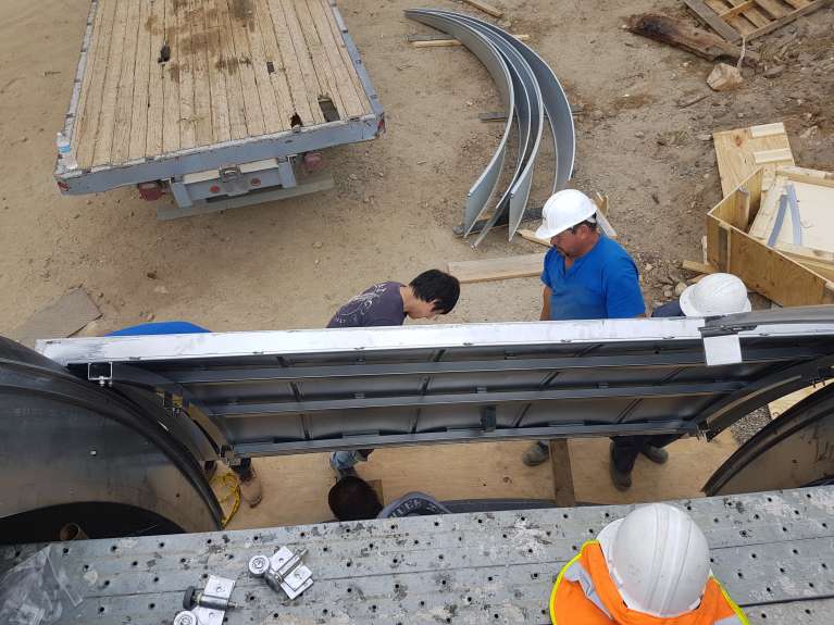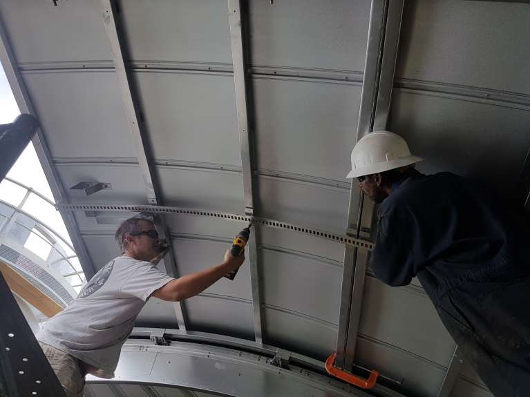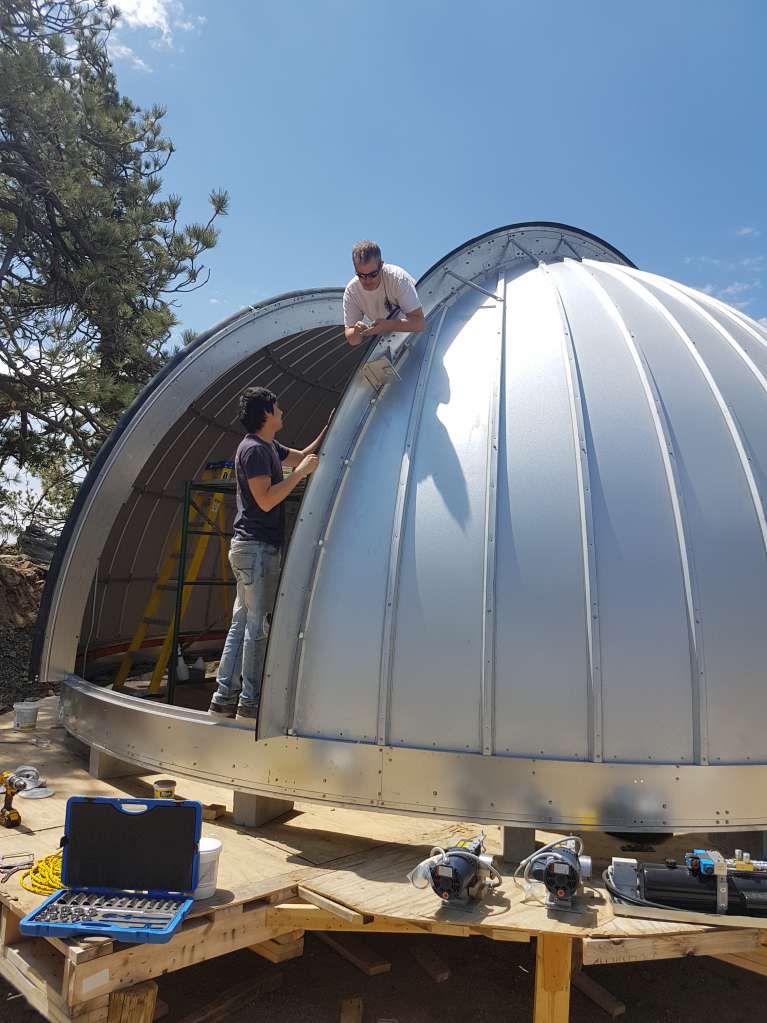 We plan to wrap up at Site #2 tomorrow morning, and then get to work on the dome at Site #1. The is the dome that had the damaged shutter from a chunk of a tree landing on our shipping container. The replacement shutter made it through customs and is now in Tijuana. It will arrive at SPM late Monday afternoon. We should be ready for it by then!