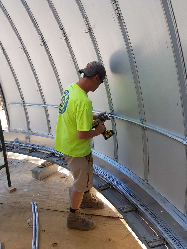 After lunch we went to work on the dome at Site #1. We got the roof on and the upper shutter tracks installed. This is what took us all day to do on Wednesday, so we seem to be picking up speed. Things went faster mostly b...