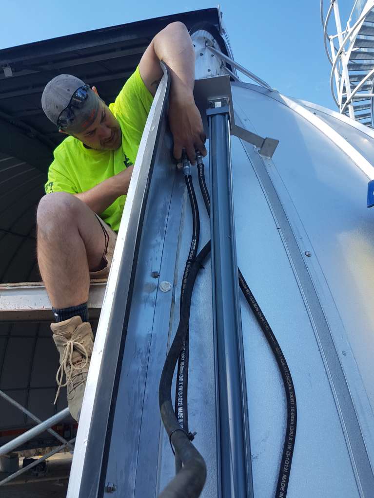 The dome at site #2 was completed today before lunch. We hung the bottom shutter, hooked up the hydraulics, and then tested the control electronics. The upper and lower shutters both function correctly, with the drive motors and limit switches passing inspection. We did not try to rotate the dome, but we tested the two azimuthal drive motors, and they both worked correctly.